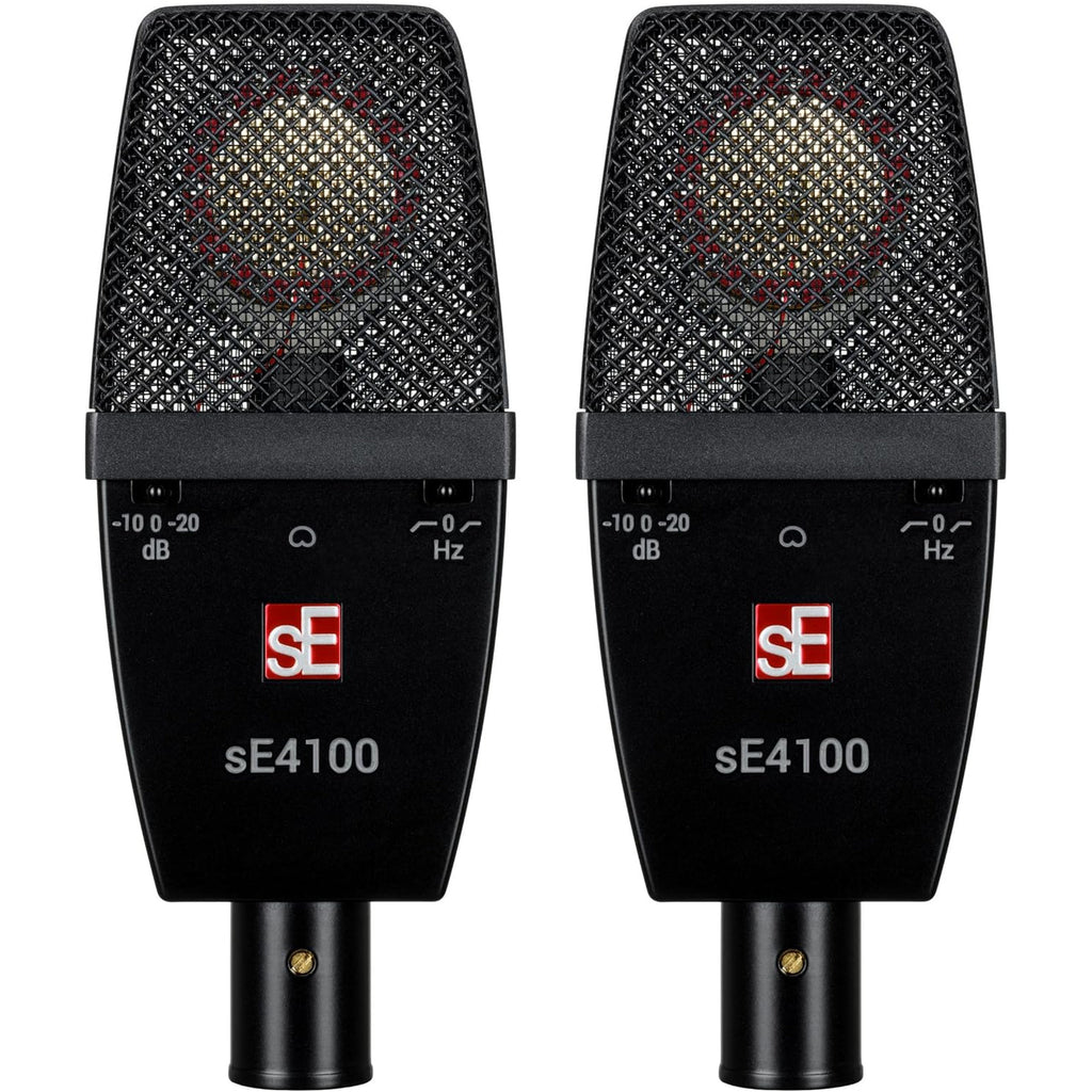 Featuring the very same handcrafted twin 1" gold-sputtered brass capsule as the sE4400 - the sE4100 is a true workhorse that delivers incredible results on a wide array of sources. From vocals to grand pianos and acoustic or brass instruments to electric guitar cabs and drum overheads - the sE4100 is outstanding in live environments as a factory matched-pair for overheads or instrument spot mic applications.
