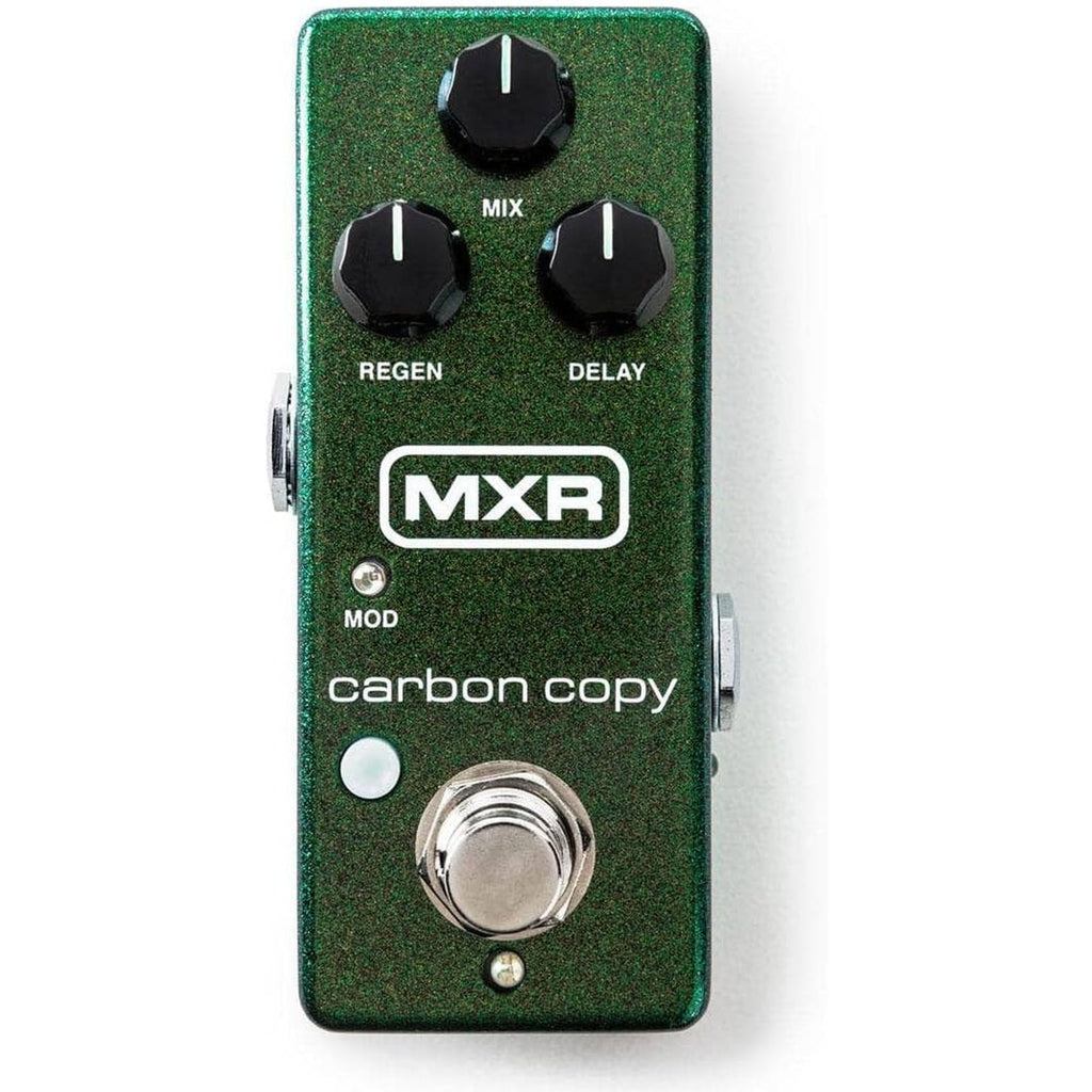 MXR Carbon Copy® Mini Analog Delay. The Carbon Copy Mini Analog Delay packs organic analog warmth, shimmery modulation, and ease of use into an MXR mini housing with a Bright switch for additional sonic versatility so that you can make the most out of your pedalboard real estate. This pedal can be powered by a Dunlop ECB003 9-volt adapter, or the DC Brick™, Iso-Brick™, and Mini Iso-Brick™ power supplies (not included).