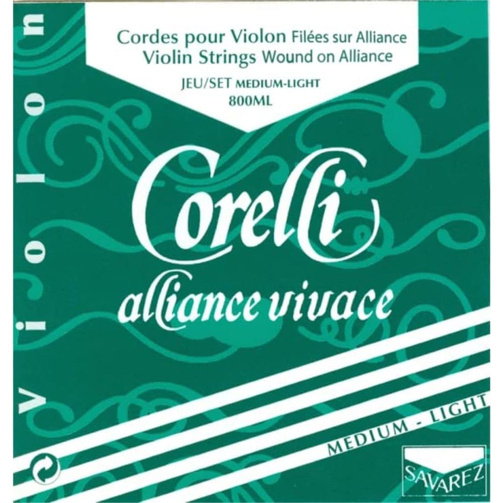 Savarez Corelli Alliance Vivace, Violin Set, Loop E, 4/4, Light. Alliance Vivace violin strings meet the demands of the most demanding violinists. These strings provide a fast and precise response with various bow strokes. Alliance Vivace strings offer a rich, colorful timbre and a definition of sound, comparable with a gut string with more harmonics. Their fiber composite core makes them insensitive to temperature variations and humidity.